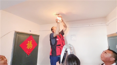 在部队,他们守卫着祖国;回到社区,他们服务居民。今年47岁的周学功曾是一名空军通信兵,今年6月底,周学功值班时接到电话,东山一路一幢居民楼内的灯不亮了。他便立刻找来工具,买来灯泡并帮忙更换。