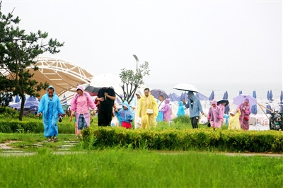 盛夏时节,风雨频繁,驱赶了炎夏的酷热,也带来了令人舒适的凉爽。7月23日,一场强降雨再次光临岛城,但丝毫不影响市民游客的热情。他们或手撑雨伞,或身着雨衣,漫步公园、绿道、海滩,五颜六色的雨具就像烟雨缭绕中盛开的似锦繁花,搭配着绿得耀眼的草木,不经意间描绘出一幅色彩斑斓的夏日画面。