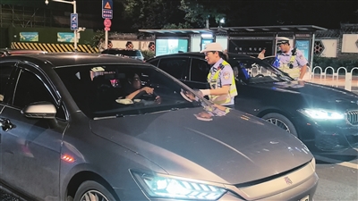 当晚,青岛西海岸新区珠江路华裕唐城门前,珠江路隧道东侧入口,青岛开发区交警三中队中队长王丽带领民警和辅警逐车检查。夏季是旅游旺季,新区作为夏季旅游热门打卡地,吸引了众多游客。珠江路作为新区东西向的主干道之一,晚上车流不断。在王丽和同事们的引导下,司机纷纷摇下车窗接受酒精初检。晚9时10分许,一辆面包车行驶到卡点前,司机走走停停,似乎有些犹豫。王丽和同事立刻上前将车拦下,司机接受初检时,初检仪的红灯反复闪烁。王丽和同事们立刻让他下车接受呼气式酒精检测,显示为71毫克/100毫升,构成酒驾。面对王丽的询问,司机承认刚才和几个朋友聚会时喝了一扎啤酒,因为觉得离家近,觉得不会有交警查车便开车回家,没想到半路被查获。