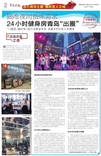 夏季的夜晚,伴随动感的音乐,健身房内跑步机、椭圆仪正加速运转;杠铃、哑铃随着富有节奏的喘息声此起彼伏;室内动感的舞姿,洋溢着欢快的氛围。每天晚上7时到10时,位于新业广场的乐刻健身都会上演这样的画面。与普通健身房不同的是,乐刻健身是一家24小时营业的健身房,传统健身房通常在晚上9时就结束营业,但24小时健身房却可以随来随练。为了实现全天候营业,商场特意为门店开设了专门的出入口。乐刻健身青岛城市负责人耿威介绍,晚上10时左右大部分顾客会散去,但根据监控显示,凌晨2时依然会有人来健身。