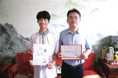 马立明说,儿子考上高中后,他也重拾考研梦。从儿子高二开始,每天晚上在书房里他们父子同案学习,各自奋战又相互鼓励。今年5月,马立明被青岛大学商学院录取为硕士研究生,率先圆梦。受其影响,儿子高考志愿也填报了青岛大学商学院,并如愿以偿。就这样,父子成为了“师兄弟”。