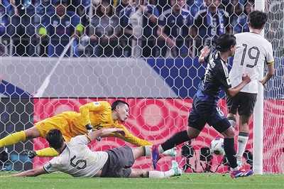 比赛第12分钟,中国队出现防守严重漏人,远藤航在角球中无人盯防将球轻松顶进,日本队1:0领先。上半场补时阶段,堂安律右路传中,三笘薰后点头球破门将比分扩大至2:0。