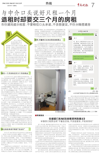 进入毕业季,随着越来越多的外地入青人员和大学毕业生租赁住房,租赁市场较为活跃。但由于租客偏听偏信房屋出租人的口头承诺,或者偏听偏信相关网络平台发布的虚假房源信息,加之租客普遍缺乏租赁风险法律意识,造成近期我市出现不少提前退租违约、延迟或者不予退还租金和押金,租房承诺前后不一致等信访投诉案件,致使承租人和出租人利益受损。为此,今年8月初,我市住房和城乡建设局发布《住房租赁风险提示》。