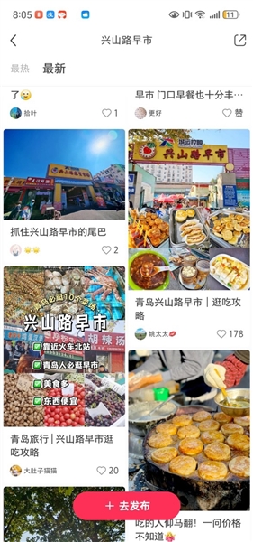 “来青岛,建议你一定要早起感受一下烟火气息浓烈的市井早市,真的太好逛了!5点半左右,兴山路早市已经开始啦,门口附近是各种小吃摊位。”网友“杜杜女大王”在小红书上推荐了肠粉、鸡蛋汉堡、肉饼等美食。网友“姚太太”在“小红书”上晒出美食后,向外地游客发出推荐,还专门列出线路,“建议坐火车到青岛北站的宝子们,可以把兴山路早市当做第一站,因为只要坐一站地铁就到了。”