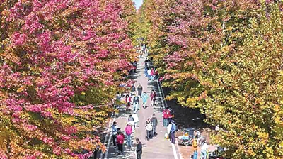 据介绍,张家楼红枫林园区占地1000多亩,种植美国红枫、秋红枫6000余株,每年10月中下旬进入最佳观赏期。园区内除了绚烂的红枫,还有吉野樱花以及海棠、玉兰、紫薇、鸡爪槭、紫叶李等名贵苗木,从4月到11月均可看花赏景。如今,千亩红枫林已成为张家楼街道特色文旅品牌形象和“网红”打卡地,吸引众多游客络绎不绝,在此处体验一场精彩绝伦的寻枫之旅。