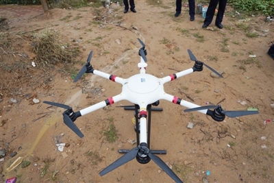 相比无人船,无人机的操控距离更远。一架无人机在工作人员的操控下,发出巨大轰鸣声,随即向宽阔水面飞去。飞到指定地点后,无人机下降高度,在距水面还有一米左右距离时开始悬停,然后缓缓释放吊绳。随着吊绳下降,采样瓶没入水中完成采样。吊绳开始缓缓收紧,将采样瓶收拢后,无人机迅速返航回到陆地。工作人员将无人机上的采样瓶取出,把样品装入专业器皿中,一次采样监测任务就算完成了。