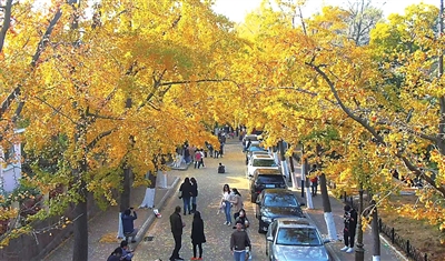 五彩斑斓的落叶,体现的是城市的韵味。近年来,为了让市民在闲暇之余能够观赏落叶,全国多地推出“落叶不扫”政策。落叶正在转变为“城市的装饰”,其所体现人与自然和谐、人民城市理念已经成为共识。早在2009年,成都市就开始实施银杏落叶“只拣不扫”的措施,让满目金黄的银杏叶已成为一道亮丽的风景线。2014年,上海决定“落叶不扫”,经过多年探索, 40多条道路落叶景观品质在稳步提升。北京市从2017年开始试点,保留秋冬落叶景观,为名胜古迹增色不少。