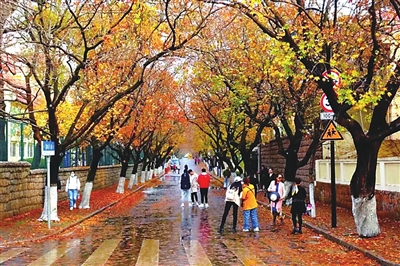 “看青岛的秋色,首选八大关。”家住城阳区的吴女士平时工作、生活主要在城阳周边。然而,每年要去一次八大关的习惯,她却一直保持着。“年轻的时候,春游除了爬崂山,就是去八大关和中山公园赏樱花。随着孩子渐渐长大、工作忙碌,难得的‘五一’和‘十一’小长假大多要带着孩子出青岛玩,每年的‘八大关行’便从春天一直拖到入秋。”吴女士说,秋季去八大关最好是雨天,城市景色自带滤镜,雨点敲打着法国梧桐,宽大的树叶缓缓落下,这就是青岛的秋。