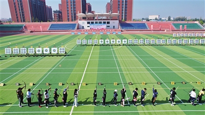 本报10月27日讯 日前,2024年中国射箭协会大众运动水平等级达级赛暨2024年全国射箭精英赛(山东莱西)在山东文化产业职业学院开幕,近300名来自全国各地的“神箭手”云集莱西市,以箭会友,传承传统文化,尽显体育竞技的昂扬风采。
