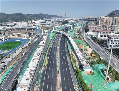 过程中,交发集团协调各参建单位,积极与青岛市交通工程建设和质量安全技术中心、青岛高速管理处以及交警等部门对接,通过提前制定预案、增加人员和机械投入等方式,抢抓施工窗口期,全力冲刺项目建设。“为尽量减少涉路施工时间,保障青银主干道畅通,项目部统筹考虑各项作业要求,通过事前桌面推演、事中超饱和投入等方式,顺利完成了占路施工。”青岛城投集团旗下青岛交通发展集团唐山路快速路工程管理中心副部长艾新洁告诉记者,在顺利完成路基改桥施工同时,项目还完成了上跨青银高速的钢箱梁架设工作,最大程度保障青银高速主线通行。