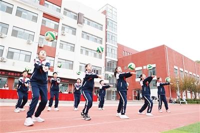 在开幕式的展示环节中,学校的体育社团集体亮相,足球小将们展示了他们过硬的球技:颠球、传球、过人,让台下的学生们连声叫好;排球队将平日的基本功改编成排球操让大家眼前一亮;花样跳绳社团表演的精彩绳操套路,赢得了全校师生的阵阵掌声。