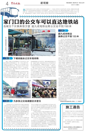 ~~~岛城五个区换乘很方便 超九成地铁站离公交站不到150米