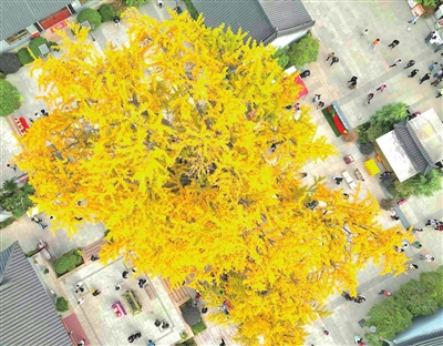 本报11月11日讯 近日,坐落于青岛市城阳区、拥有近1600年历史的古老寺庙法海寺,成为岛城市民欣赏银杏的热门打卡地。法海寺内的两棵古银杏树迎来了它们一年中最美的时刻,千年银杏树已经金黄满身、秋韵十足。