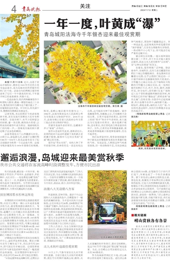 11日上午,气象专家在北九水开展赏秋直播。目前正值北九水秋叶的观赏期,猩红夺目的枫叶铺满山间、路旁,北九水斑斓的秋叶和奇石、碧水交相辉映,是这个时节不可错过的“限定版”视觉盛宴。为此,公交崂山公司加密经过北九水的383路班次。