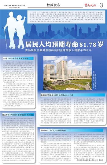 ~~~青岛居民主要健康指标达到全球高收入国家平均水平