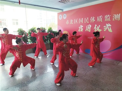 本报11月13日讯 11月12日上午,市北区国民体质监测中心启用仪式暨“北爱人才·健康相伴”人才体质健康护航活动在市北区热河路59号举行。启用仪式上,健身瑜伽、八段锦队伍进行了展示表演,市体育局群众体育处处长李莉宣布中心正式启用,市体育事业发展中心全民健身活动部部长刘昕煜、区教体局二级调研员姜新民、区委组织部副处级领导干部宋琨共同为监测中心揭牌。