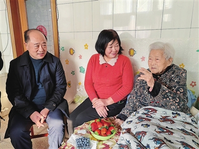 “考虑到老人身体和家庭状况,我们村委为老人定制了爱心‘套餐’。”王吉才说,“老人的两个儿子、儿媳年事已高,孙子经营水站、孙女常年在外工作,为了更好地照顾老人,村里为老人提供爱心午餐,还安排两个护工隔三差五陪伴老人。一定要把老人伺候好,她年轻时做善事,她老年时我们一定要让老人开心过好每一天,让老人充分感受大家庭的温暖,安享晚年。”