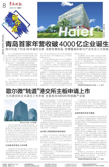 ~~~已向港交所正式递交上市申请 全面布局MEMS传感器产业链