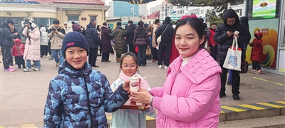 来自苏州的游客刘先生春节带着全家人来青岛旅游,在栈桥喂完海鸥后,收到晚报小记者送上的崂山热可乐心里感到暖暖的。刘先生说:“出行之前曾在网上查找攻略,很多博主都推荐了崂山可乐,没想到在栈桥边上收到了青岛晚报小记者送上的温暖心意。”