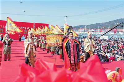 昨日上午,第61届琅琊祭海节在青岛西海岸新区琅琊镇举办。本届祭海节以“海韵琅琊传千秋 向海祈福启新程”为主题,共分“祭海仪式”“海洋大集”“节目表演”“‘春风行动 晴琅送岗’招聘会”“产品展销”“文艺汇演”六大板块,吸引了来自全国各地的游客参与。
