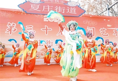在民间艺术展演现场,来自城阳区各街道的100余支社区文化队伍、3000余名群众演员齐聚一堂,柳腔、秧歌、旱船、舞龙、腰鼓、鱼皮鼓、高跷等十余种民俗种类,百余个节目精彩呈现。伴着欢快的鼓点,巨龙在场地中央上下翻腾,让人目不暇接;舞狮表演造型多样,栩栩如生;活动场面威武壮观,群众演员们激情投入,让市民游客畅享文化大餐。
