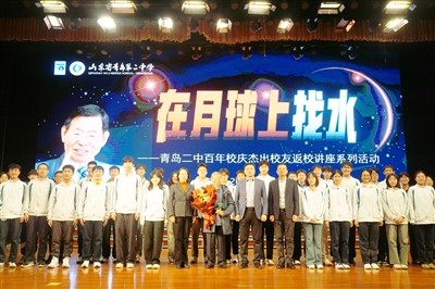 13日,青岛二中1965届校友、中国科学院空间中心研究员、原中国探月工程副总设计师孙辉先重返母校,参与新学期开学典礼,为全校师生带来一场题为“在月球上找水”的专题讲座,献礼青岛二中百年华诞。精彩的报告拓宽了师生的视野,更点燃了学子的科研梦想。二中学子们为孙辉先送上事先准备的礼物3D打印月球模型。