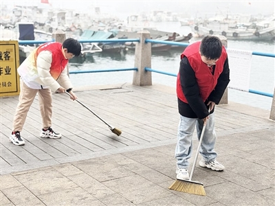 活动现场,学生们兵分两路。一部分学生统一着装,手持垃圾袋和清洁工具,沿着小港湾海岸线开启“弯腰行动”,细心清理道路上垃圾。另一部分同学则化身环保宣传员,积极向游客宣传环保知识。他们热情地发放环保宣传资料,耐心讲解海洋垃圾对生态环境造成的危害,倡导游客养成爱护环境、不乱扔垃圾的好习惯。