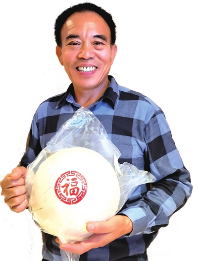 13日中午,记者与王哥庄大馒头协会的成员代表、王哥庄大馒头产业园副总经理张本龙一起,带着24个王哥庄大馒头来到刘德文所住的府新大厦。“这是今天上午刚出锅的正宗王哥庄大馒头,还带着奶香味。20个8两的、两个2斤的、两个3斤的。王哥庄大馒头至今已经有500多年历史,专供面粉、崂山水,手工揉、铁锅蒸、木柴烧,男女老少都喜欢吃,请您带回台湾给山东老乡解乡愁。”张本龙热情介绍,“常温可以保存4天,带回后冰冻起来,加热后掰着吃更有感觉,或者用竹刀、陶瓷刀切片,一般不用铁刀,以免有铁锈味影响口感。”