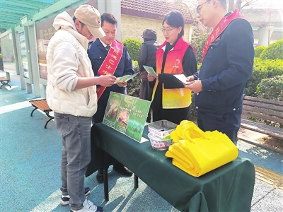 公交隧道三分公司志愿者与市南区四川路社区志愿者来到街头站点,开展打火机置换环保袋活动,宣传森林防火。志愿者手持环保袋,热情地向过往市民发出倡议:“为了守护绿色家园,减少火灾隐患,我们可以用环保袋换您的打火机。”志愿者耐心解释活动的意义,介绍森林防火知识,提升市民参与森林防火的积极性。 (青岛晚报/观海新闻/掌上青岛记者 徐美中 摄影报道)