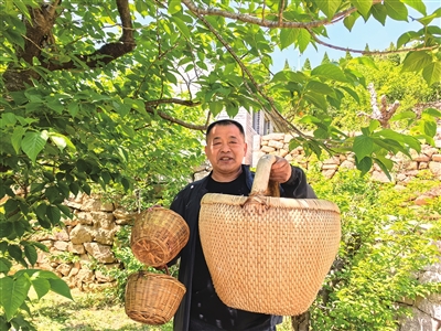 “我们村种植樱桃的历史有好几百年了,原来多是村民在房前屋后种上几棵,一来招待亲朋,二来可换点零用钱。”今年63岁的大崂村村民王学强是村里有名的种樱桃老把式,也是1996年首届北宅樱桃节时到栈桥推介樱桃的村民之一。作为北宅樱桃节30年的见证者之一,他一直保存着当年用来装樱桃的“圆筐”。