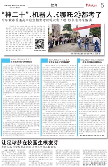青岛大学附属实验学校物理老师武文婷说,学生反映试题结构跟平日老师指导的方向一致,学生感受最深刻的是试题情境比较丰富,既能考查物理知识和学科素养,又能引导学生关注国家大事,厚植家国情怀。