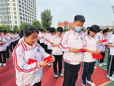本报5月27日讯 六一国际儿童节即将来临,青岛市教科院附属学校(青岛三十七中)举行十四岁成长礼暨心理健康教育活动,通过一个个精心设计的环节传递梦想、凝聚力量。