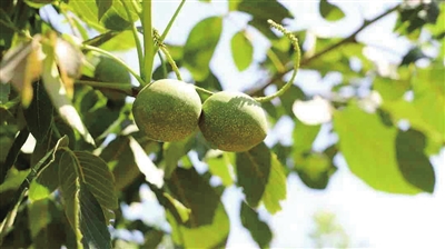 本报6月3日讯 近日,记者来到位于西海岸新区大村镇的悠然谷生态园,发现园区内种植的碧根果已到初果期,一颗颗绿油油的果子,裂开青皮挂满枝头,露出饱满的果实,长势喜人。