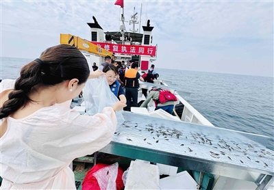 增殖放流是修复渔业资源、改善水域生态的重要举措,也是新区落实海洋强国战略的具体实践。近年来,青岛西海岸新区累计开展中国对虾、日本对虾、三疣梭子蟹、褐牙鲆等各类苗种公益性增殖放流达14亿单位、社会性增殖放流超7.3亿单位,补充渔业资源种群数量,逐步改善海洋生态系统的结构与功能。