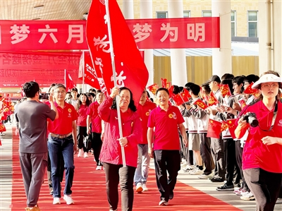 6月7日清晨,青岛为明学校举行2025届高考出征仪式,校长雷丽霞率教师团队为考生壮行,并奔赴考点,以仪式感与陪伴为学子梦想、教师担当“双向赋能”。