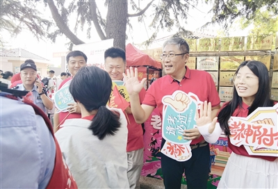 在青岛五十八中考点,周强身着喜庆的红色T恤,手持“高考必胜”“金榜题名”标语牌,脸上洋溢着笑容,与每一位前来应考的十九中学子热情地打招呼、击掌、拍肩,不时送上几句鼓励的话语。“别紧张,正常发挥就好!”“加油,你一定行!”这些温暖的鼓励,让考生们原本紧张的心情得到极大的舒缓,带着自信的笑容步入考场。