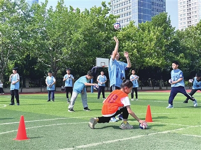 本报6月11日讯 近日,青岛五十三中教育集团首届“卓尔杯”手球训练营在学校操场启幕。开幕式上,校长王升文在致辞中强调,体育是强健体魄、锤炼意志的重要途径。手球运动需学生在奔跑对抗中精准判断,更要学会尊重规则与对手,在公平竞争中感受胜利喜悦,助力学子身心共成长。