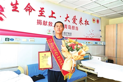 本报6月13日讯 近日,青岛市中心医院见证了一场生命接力。来自海军某部00后年轻战士程俊强与即墨区薛家泉庄村的26岁小伙姜润正接力进行造血干细胞捐献,两位年轻的捐献者在医院交接了爱的接力棒,相继成为青岛市第238例、239例和即墨区第11例、12例非血缘关系的造血干细胞捐献者。