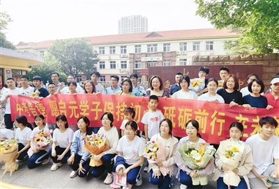 “非常感谢学校对孩子的培养,老师们非常负责。中考期间,校长和学科老师每天都会到考点送考,与孩子们击掌鼓劲、送上祝福。”学生家长赵先生说,这份陪伴让考生和家长倍感温暖。该校家委会的30多名家长共同策划了这场“特别行动”——中考结束后级部大合照,既给考生一个惊喜,也为他们的初中生涯画上圆满的句号。家长们还计划在考后开展感恩老师的活动,为家校情谊续写更多温暖篇章。
