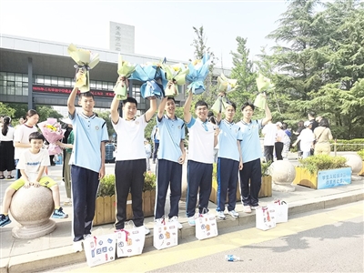 “我们考完啦!”历史科目考试结束后,在青岛第二实验初中考点外,青岛五十三中考生肖承宇和五名幼儿园“发小”欣喜重逢。他们身穿不同初中学校的校服,高举着鲜花,以考点为背景,拍下一张富有纪念意义的“初中毕业照”。