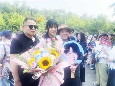 中考期间,青岛五十三中考生邢佳艺得到了“最懂自己”的父母的“最强应援”——因为邢佳艺喜欢乒乓球奥运冠军王楚钦,父母便手持带有王楚钦形象的手举牌,在考点外给她加油。昨日,他们又“带”着“偶像”来迎接完成中考的孩子。“运动员永不放弃的体育精神激励着我,在遇到难题的时候不能退缩。”邢佳艺认为,中考是人生的一段重要经历,但不是终点,而是一个新的起点,接下来她将为高中生活提前做准备。