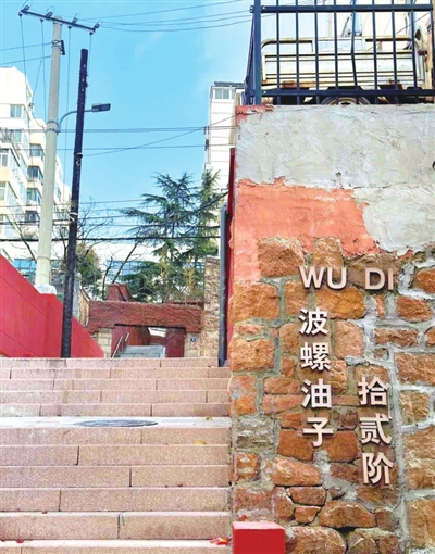 从观象山地铁站A口望去,12条石阶串联起无棣三路的坡地落差。改造团队遵循“修旧如旧”原则,沿用百年前的石头比例与工艺,通过灌浆处理让老石阶既保留历史纹路,又能承载现代通行。
