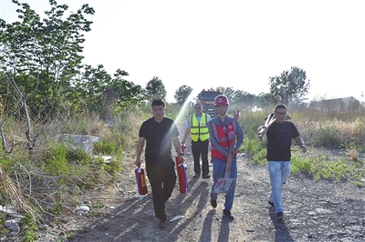 本报6月18日讯 6月11日,某村附近荒地突发火情,火势迅速蔓延,直接威胁附近民房的安全。附近的青岛地铁9号线一期铁骑山出入段线建设者发现火情后,迅速启动应急预案,组织救援队伍携带消防器材,派出洒水车,开展紧急灭火,成功扑灭火情。
