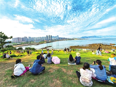 经过大雨的洗礼,20日的岛城阳光明媚,天空澄澈清新。当天下午,在小麦岛景区,前来游玩的市民和游客络绎不绝。散步、拍照、看海,享受着属于自己的闲暇时光。
