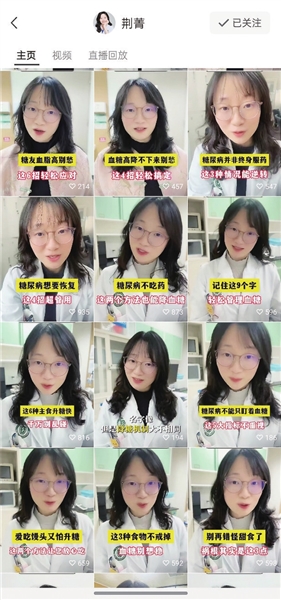 荆菁的科普视频专注于慢性病,糖尿病、三高、肥胖等,受众面广。视频的火爆,还与博主的亲和力与同理心密不可分,这便是医生的“网感”。2024年3月,荆菁尝试直播,每月直播1至2次,每次1小时。每次直播观众少则有3000多人次,多则能达7000多人次。“直播很累人,消息滚动起来,网友的问题回答不完,虽然累,但我很享受与网友交流的过程,大家互相把情绪价值拉满,你给我点赞,我给你解答问题。这有点像义诊,大家在精神上相互支持。正确的三观输出很重要,这即能留住网友,也让网友有所收获。”荆菁说。