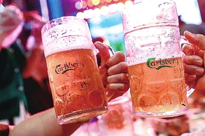 游客在啤酒大篷举杯畅饮。西海岸供图
