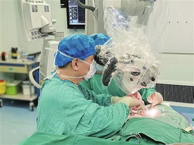 脑动脉高流量搭桥手术难度大、风险高,M2血管直径仅约1.5毫米,需要在高倍显微镜下缝合12—14针,对缝合精确度和时间有着严格要求,如果阻断时间长,术后脑梗塞的发生风险和几率都会大大提高,可能导致患者术后出现偏瘫、昏迷甚至死亡等严重并发症。此外,脑血管搭桥手术对术中血压、二氧化碳分压等各项指标同样要求严格,最终由麻醉科副主任医师徐永生为患者实施麻醉,神经功能检查科邵晓军副主任医师进行电生理监测。术中,栗世方在成磊副主任医师、马俊伟副主任医师的协助下,在显微镜下精细分离、完整显露动脉瘤及其流入、流出的M2血管,将发自动脉瘤顶端的M2下干横断后,在高倍镜下将其与M2上干进行端侧吻合。手术过程顺利,在ICG荧光造影和多普勒超声检查均证实搭桥血管畅通后,对动脉瘤进行了完整切除。术后,患者神志清楚,肢体活动良好,无神经功能缺失,复查颅脑CT未见颅内出血和脑梗塞,于一周后顺利出院。颅内—颅内(IC-IC)脑血管搭桥术被誉为第三代血管重建技术,是治疗复杂脑血管病的“终极手段”。尽管该技术具有不依赖颅外血管进行供血、没有附加损伤、供体与受体匹配度高等优点,但在实施过程中仍面临手术部位深、空间狭小等诸多挑战,增加了血管吻合技术的复杂性,一旦手术失败可能导致供体和受体血管的损坏并引发大面积脑梗塞。此次手术,标志着青大附院神经外科在脑血管外科领域取得了新突破,科室将紧跟国内外诊疗前沿,以更加先进的治疗理念和技术为复杂脑血管病患者带来福音。