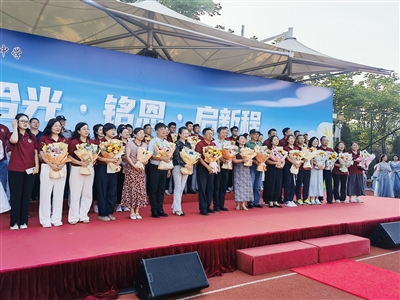 青岛三十九中市北分校“家国筑梦 青春启航”毕业典礼上,优秀毕业生代表分享成长感悟,从感恩师长、父母延伸至“报效祖国”的赤子之心。校长聂麦荣以“正心、立人、尚学、修能”校训寄语学子,当毕业生向教师献上自制贺卡与礼物时,不少师生热泪盈眶,现场涌动着浓浓的惜别与感恩之情。