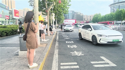 记者现场采访时注意到,公交车专用道入口处设置了“违法抓拍”的提示牌,地面还有“借道区域”提醒车辆不要驶入专用道,保障进站公交车顺畅进入专用道上下客。