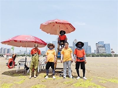 一位皮肤晒得黝黑的“壮汉”告诉记者:“现在游客人数还少,等到人多起来,海水浴场跟‘下饺子’一样,一个游泳区只留一个瞭望员,其他4个人同时巡逻。一天稀松走上3万步。”这4人平时是巡逻员,一旦发生险情立刻变身救护员,个个一猛子扎进水里,20秒至少游25米,一口气还能下潜20米深。但是真正需要他们出手的机会并不多,因为还有其他“壮汉”站在高处提前预判化解风险。